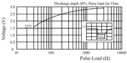物聯(lián)網(wǎng)應(yīng)用使用脈沖電流。處理器和傳感器可以抽取幾毫安的短脈沖電流,然后切換到低功耗模式并維持很長(zhǎng)時(shí)間。使用脈沖電流會(huì)導(dǎo)致輸出電壓下降。圖3顯示即使2mA的脈沖負(fù)載也會(huì)使CR2032的輸出從3V下降到2.2V左右。